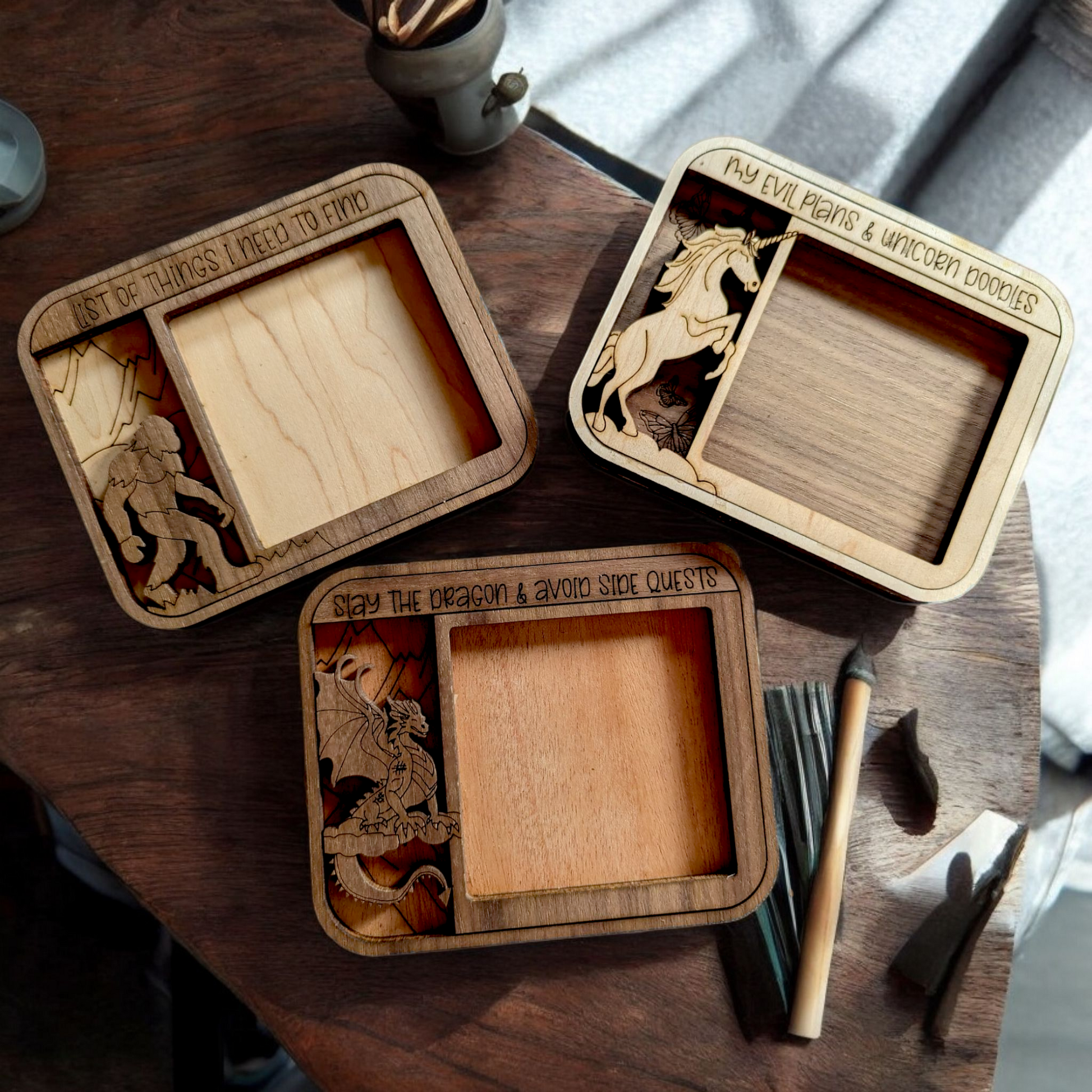 Organize your desk in style with our fun, fantasy-inspired sticky note holders! These mystical designs bring a touch of magick to any workspace. Choose from three mythical favorites: Unicorn, Bigfoot, or Dragon.