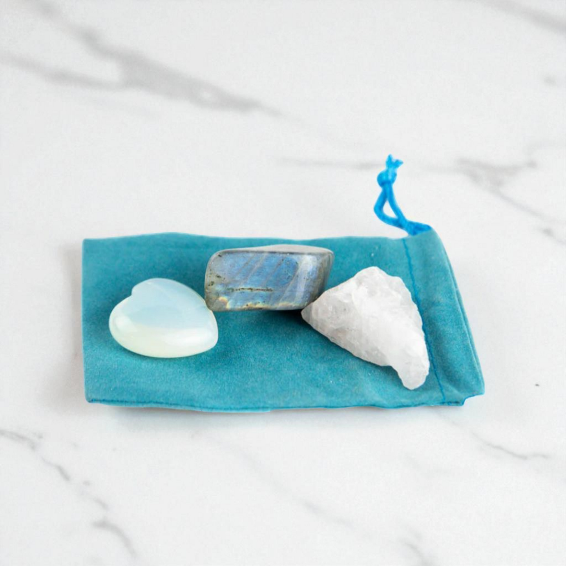Achieve improved balance with our Libra Crystal Bundle featuring a soothing mini Opalite heart, tumbled Labradorite, and natural Quartz, all nestled in a drawstring bag. Ideal for Libra birthdays, astrology-inspired gifts, zodiac crystal healing kits, and anyone seeking harmony, clear communication, and inner balance.