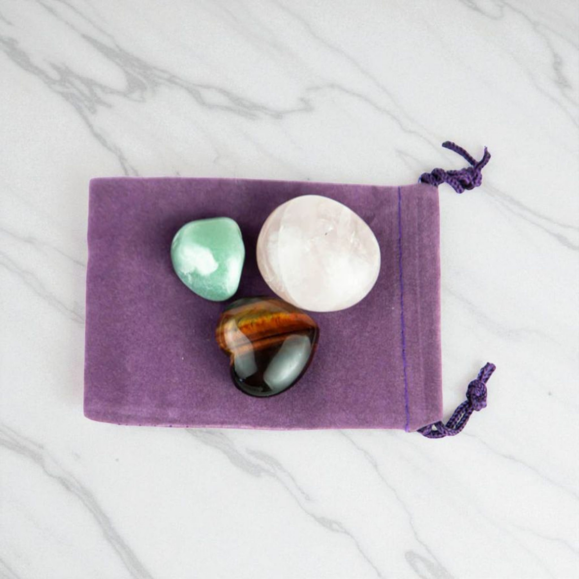 Ground yourself with our responsibly sourced Taurus Crystal Bundle featuring a soothing mini Rose Quartz palm stone, prosperity-attracting Green Aventurine, and courage-inspiring Red Tiger’s Eye heart, all tucked into a drawstring bag. Perfect for earthy Taurus birthdays, self-care rituals, and anyone seeking stable, abundance-boosting crystal energy.